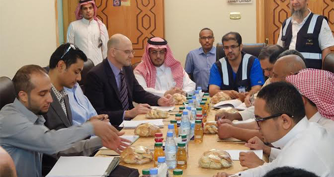 وكان في استقبال الوفد حين وصوله للطائف: مساعد مدير الشؤون الصحية للصحة العامة الدكتور محمد الزايدي، وعدد من منسوبي إدارة مكافحة الأمراض المعدية ونواقل المريض، وفريق من برنامج الوبائيات الحقلي بوزارة الصحة.
